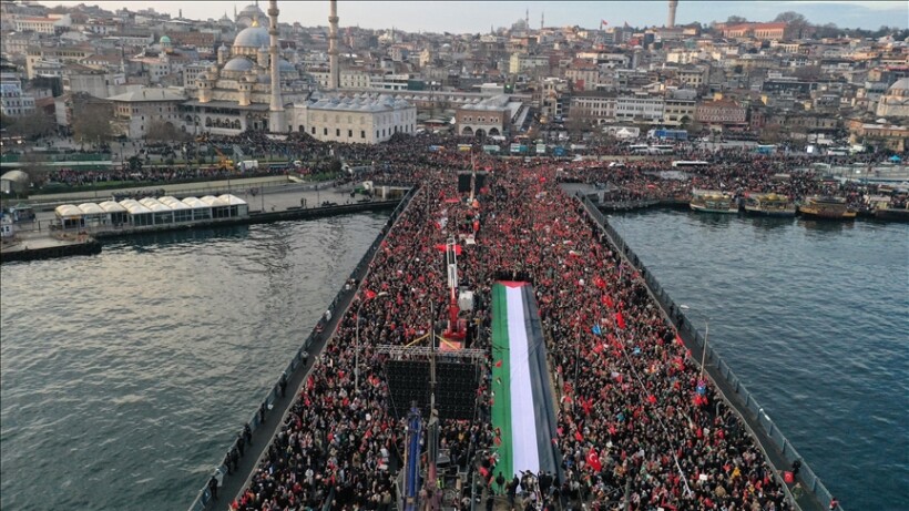 Dhjetëra mijëra pjesëmarrës, të cilët filluan të mblidhen pas namazit të sabahut në xhamitë historike të Istanbulit, Ajasofja, Sultanahmet, Suleymaniye dhe Xhamianë e Re në Eminönü, marshuan drejt Urës Galata, ku u mbajt tubimi kryesor.