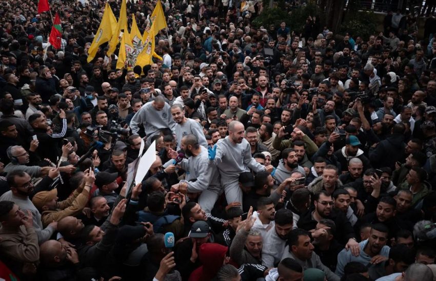 Mijëra palestinezë u mblodhën në qytetin Ramallah të pushtuar në Bregun Perëndimor për të festuar mbërritjen e autobusëve që transportonin të burgosurit. Shumë valëvitën flamuj palestinezë ose flamuj të fraksioneve të ndryshme politike.