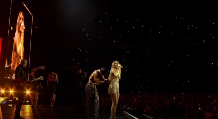 Ndërsa performonte përballë mijëra fansave, fundi me thekë që mbante mbi reçipetat dhe getat transparente i rrëshqiti nga ijet, duke e lënë në skenë vetëm me të brendshme. Në vend që të ndalonte apo të shqetësohej, Lopez vazhdoi performancën me buzëqeshje dhe vetëbesim, duke bërë një rrotullim dhe duke ngritur duart lart, si për të thënë: “Asgjë nuk më ndal!”