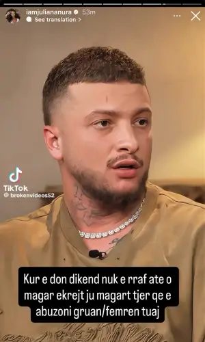 Kjo deklaratë ka nxitur reagimin e ish-banores së Big Brother Vip Kosova, Juliana Nura, e cila përmes një postimi në Instastory reagoi ashpër ndaj tij.