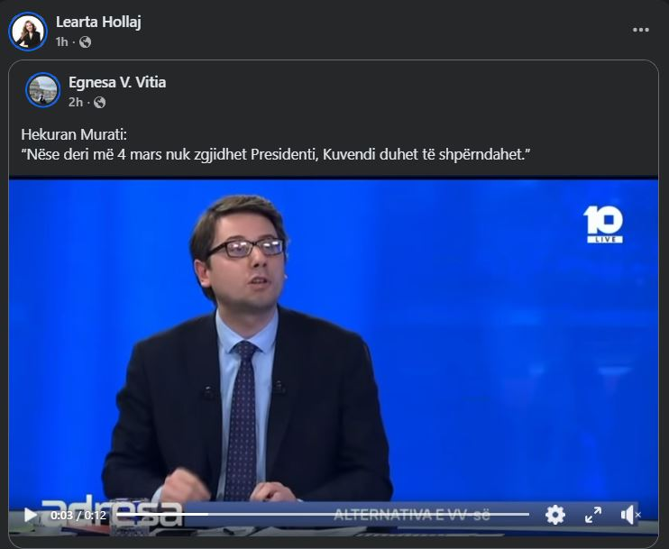 Disa anëtare të kabinetit kanë filluar të publikojnë një video të ministrit të Financave, Hekuran Murati i cili me 25 dhjetor të vitit që shkoi thoshte: “Nëse deri më 4 mars nuk zgjidhet Presidenti, Kuvendi duhet të shpërndahet”.