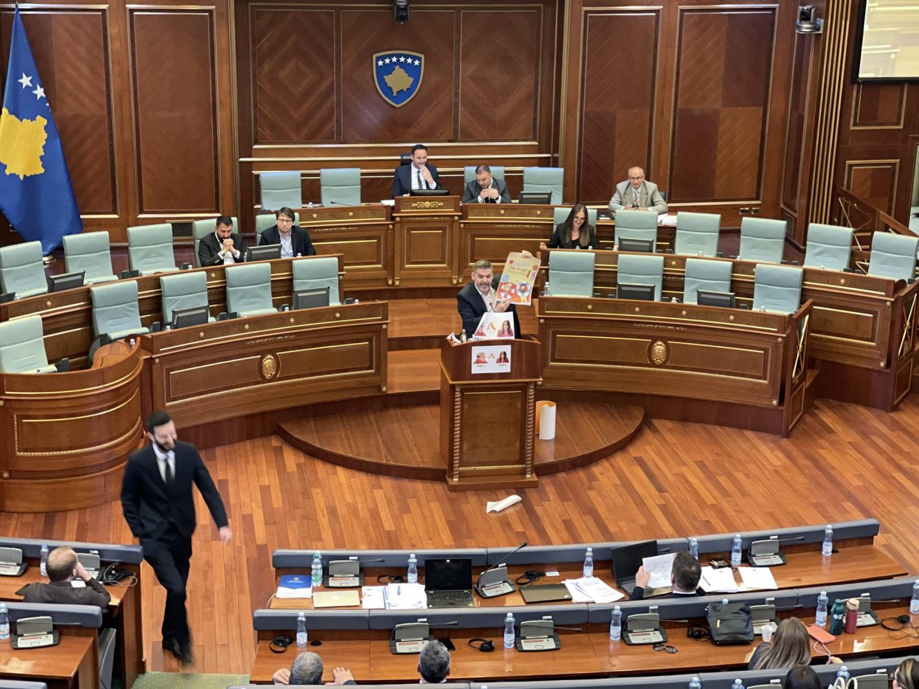 Deputeti i Partisë Demokratike të Kosovës, Ardian Kastrati, ka vendosur në foltoren e Kuvendit, fotografi të ministres Arbërie Ngavci, Dejona Mihalit, dhe logon e shtëpisë botuese “Albas”, pasi sipas tij kjo shtëpi botuese ka përfituar miliona euro nga MASHTI përmes subvencionimit të teksteve shkollore, raporton Ekonomia Online.