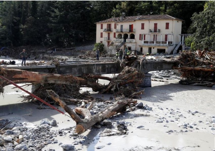 Sipas Reuters, zona jugore e Francës është përshkuar nga shiu i rrëmbyeshëm përgjatë vikendit dhe se lumenjtë kanë dalur nga shtrati, duke rrënuar shtëpi, ura dhe pjesë të rrugëve.