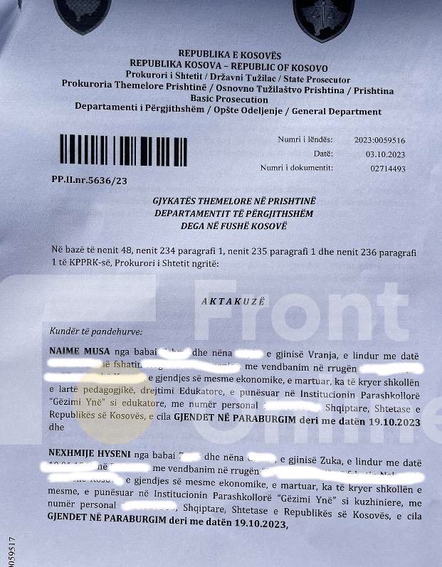 Sipas aktakuzës , Naime Musa dhe Nexhimije Hyseni më 15 shtator të vitit 2023 rreth orës 8:15 deri në orën 09:00, në cilësinë e personave zyrtarë e kanë keqtrajtuar vogëlushin tre vjeçar.