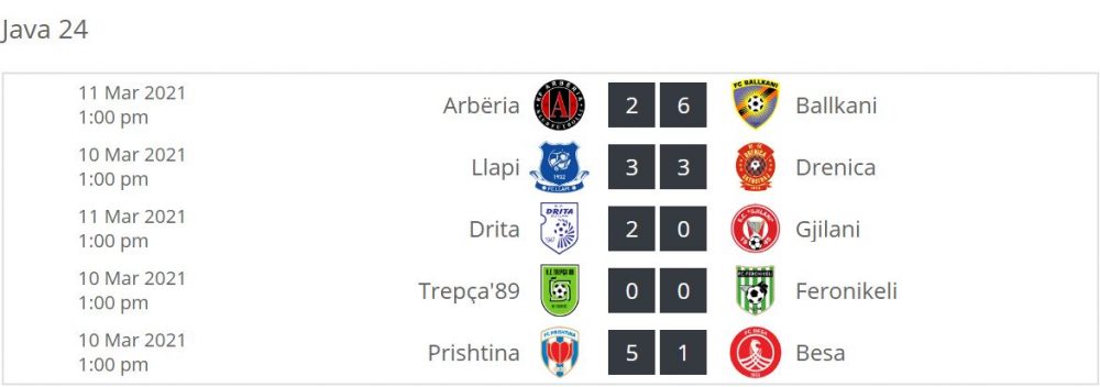 Drita e riktheu primatin në Superligë pas fitores ndaj Gjilanit në derbin e qytetit. Ballkani e rimori pozitën e dytë pasi e dërrmoi Arbërinë sot