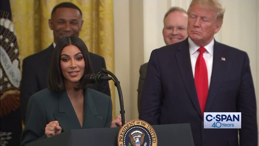 Kur ish të burgosurit rikthehen në shtëpi gjëja më e rëndësishme që mund të bëjmë për ta është t’i ndihmojmë të gjejnë një punë të mirë”, u shpreh kreu i Shtëpisë së Bardhë. Ylli I televizionit e ka vizituar edhe herë të tjera Shtëpinë e Bardhë, ku ka diskutuar për çështje të reformës në drejtësi. Ajo loboi me sukses për faljen e Alice Marie Johnson, e dënuar për drogë.