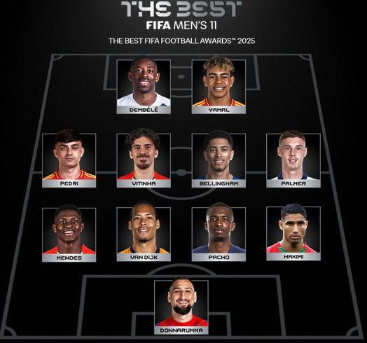 Mesfusha: Pedri, Jude Bellingham, Vitinha e Cole Palmer; derisa sulmin e përbëjnë Lamine Yamal e Ousmane Dembele.
