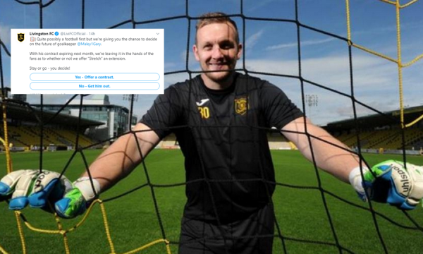 E ardhmja e portierit Gary Maley në Livingston është lënë në mëshirën e tifozëve në rrjete sociale, pasi që klubi e postoi një anketë ku tifozët mund të votojnë se a duhet t’i jepet atij kontratë e re apo jo.