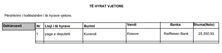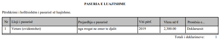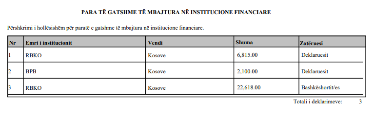 Kokaj i mban në bankë 8 mijë e 915 euro të gatshme, pa llogaritur 22 mijë e 618 eurot e regjistruara në bankë në emër të gruas së tij.