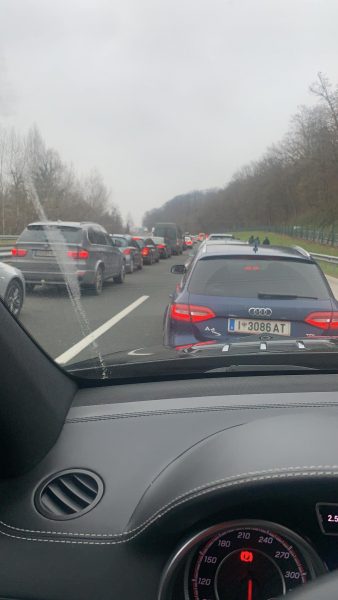 Madje ai bën të ditur se nuk po i lejohet as dalja nga autobani, pasi është me targë të shtetit zviceran. Ai thotë se vetëm automjetet me targa sllovene lejohen të dalin nga autobani.