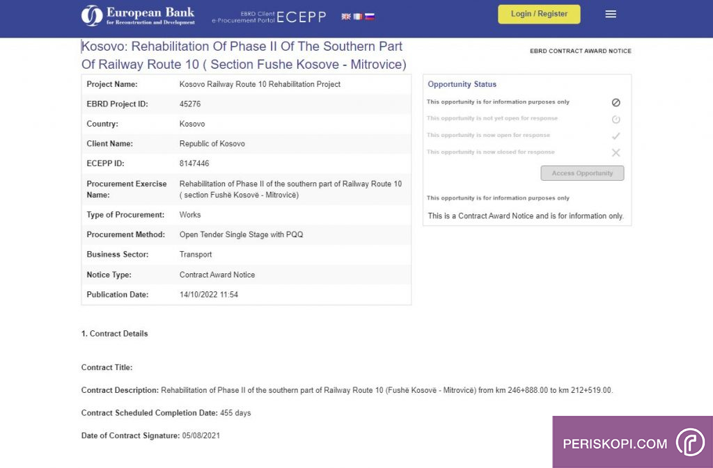 Ndonëse, nuk dihet se kur do të nisin punët, data e planifikuar e përfundimit të kontratës është 455 ditë, shkruan Periskopi.