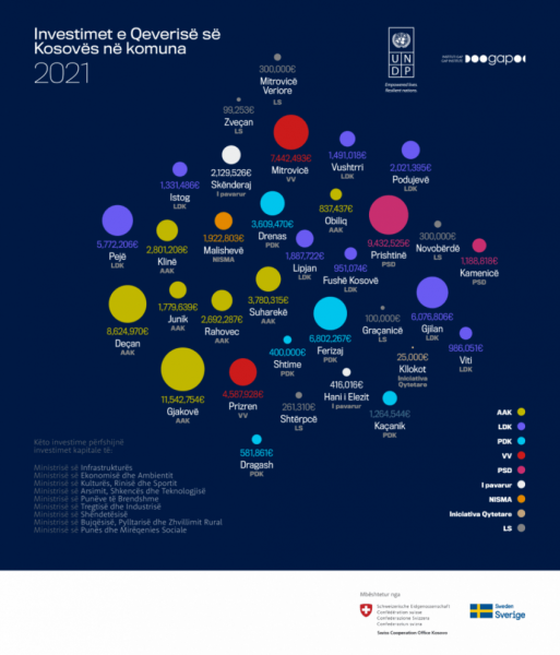 SIpas GAP-it sa i përket përqindjes së investimeve krahas popullsisë, komunat e qeverisura nga LDK janë diskriminuar kurse komunat të cilat menaxhohen nga AAK janë favorizuar. Ndërsa, në komunat e qeverisura nga subjektet tjera politike nuk vërehet diskriminim i madh pozitiv apo negativ.