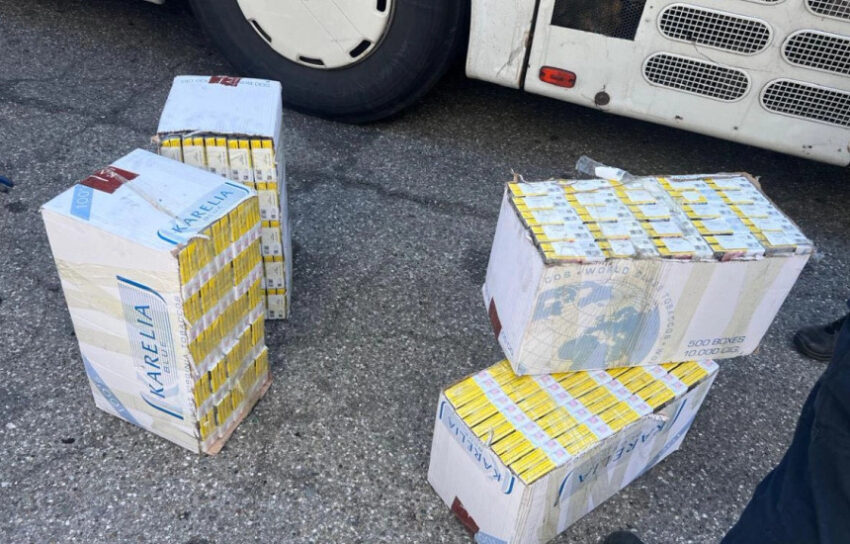 Dogana ka bërë të ditur se gjatë kontrollit fillestar në orët e vona të mbrëmjes të së dielës, në sistemin e ajrosjes së njërit autobus u has sasi e konsiderueshme e cigareve pa banderola.