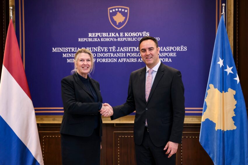 Ministri i Punëve të Jashtme dhe Diasporës, Glauk Konjufca, priti në një takim Ambasadoren e Mbretërisë së Holandës në Kosovë, Karin Boven, ku u diskutua për avancimin e marrëdhënieve ndërmjet dy vendeve dhe bashkërendimin e qëndrimeve në çështje me interes të përbashkët.