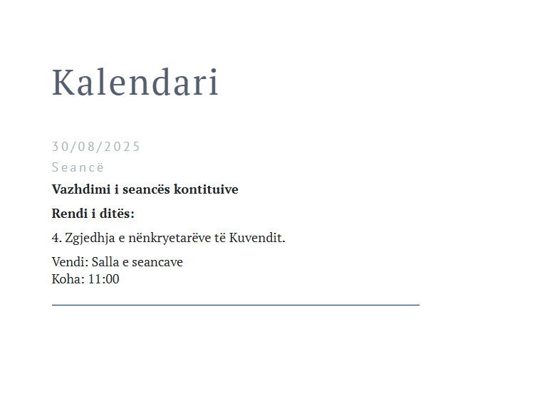 Kjo u bë e ditur në kalendarin e aktiviteteve në faqen zyrtare të Kuvendit të Kosovës.