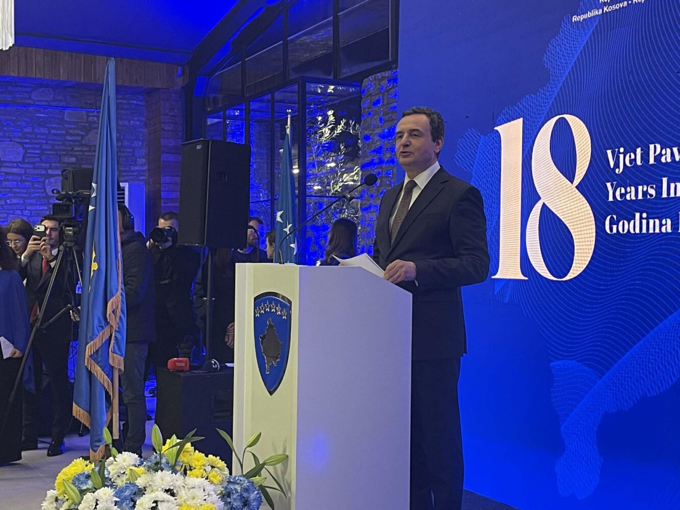 Ndërsa Kryeministri i Kosovës, Albin Kurti, tha se 18-vjetori i pavarësisë e gjen Kosovën më të fortë se kurrë dhe veçoi rolin e sakrificës së atyre që sollën lirinë.