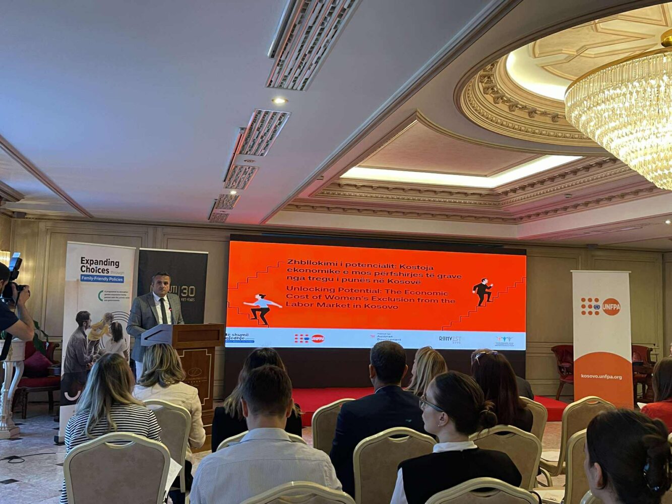 “Dokumenti i politikave që do te prezantohet sot, ‘Zhbllokimi i potencialit: Kostoja ekonomike e mos-përfshirjes së grave nga tregu i punës në Kosovë’, hendeqet gjinore në punësim dhe pjesëmarrje në tregun e punës përbëjnë një nga sfidat më të mëdha strukturore të vendit tonë. Megjithëse Kosova ka popullsinë më të re në Evropë, pjesëmarrja e grave në tregun e punës mbetet shumë e ulët. Gratë vazhdojnë të përballen me barriera që në mënyrë sistematike kufizojnë pjesëmarrjen e tyre në tregun e punës, e më gjerësisht në ekonomi“, tha ai.