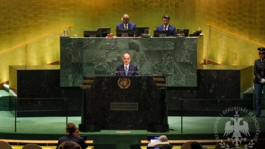 Presidenti i Republikës së Shqipërisë Bajram Begaj në fjalën e tij në Debatin e Përgjithshëm të Sesionit të 80-të të Asamblesë së Kombeve të Bashkuara që përkon edhe me 70-vjetorin e anëtarësimit të Shqipërisë në OKB, theksoi përkushtimin e vendit tonë ndaj vlerave të Kartës së Kombeve të Bashkuara, paqes, barazisë dhe bashkëpunimit shumëpalësh.