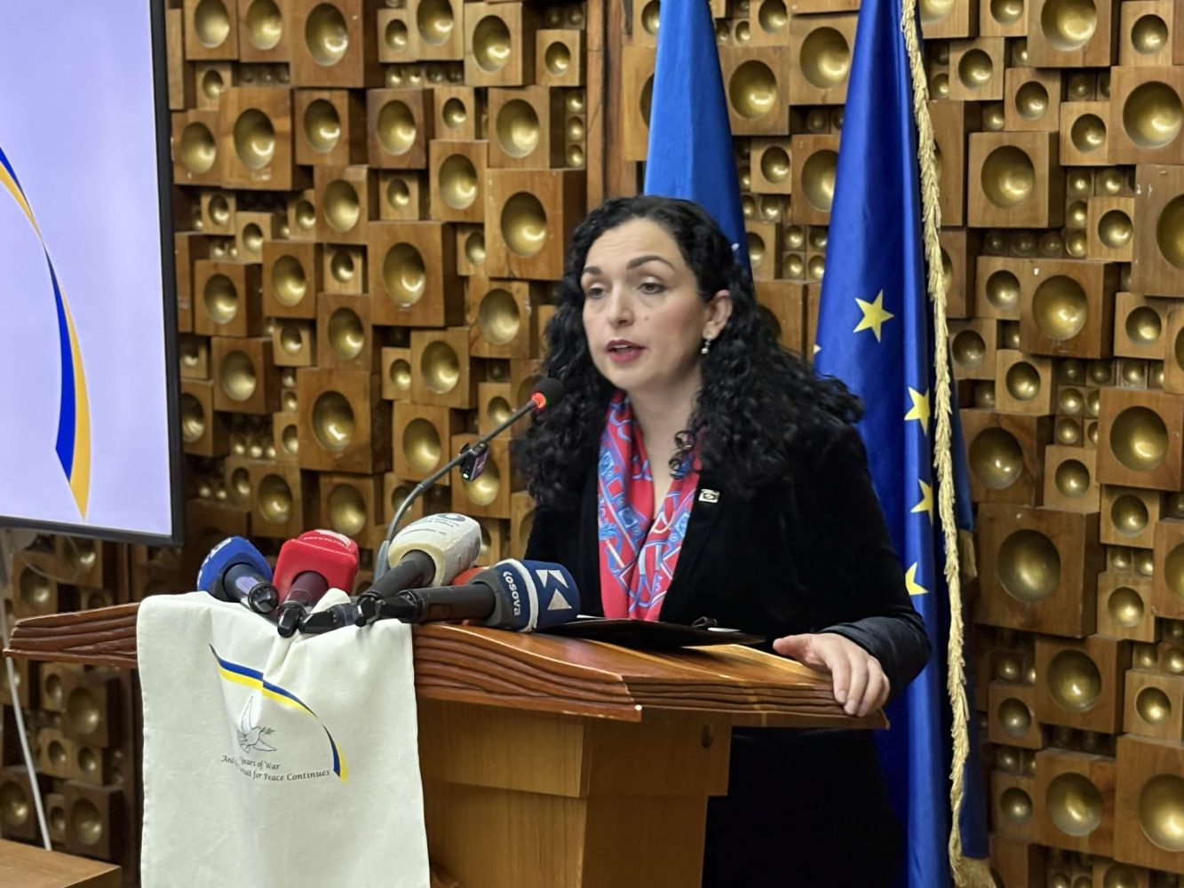 Presidentja tha se humbja e Ukrainës është edhe humbje për Kosovën, ndërsa mbështetja për Ukrainën është një angazhim për të ardhmen, për një botë më të sigurt, ku askush nuk largohet nga shtëpia për shkak të luftës.