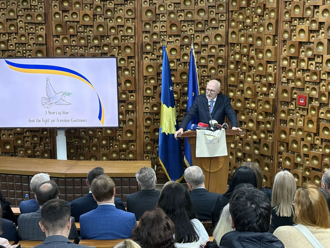 “Sot, kur shënojmë trevjetorin e fillimit të agresionit rus në Ukrainë, dua të theksoj disa mesazhe. Së pari, lufta për paqen në Ukrainë është një luftë për sigurinë evropiane. Tre vjet më parë, Rusia sulmoi Ukrainën dhe theu të gjitha rregullat. Miqtë tanë kosovarë e dinë shumë mirë se çfarë do të thotë kjo. Lufta në Ukrainë po sulmon civilët”.