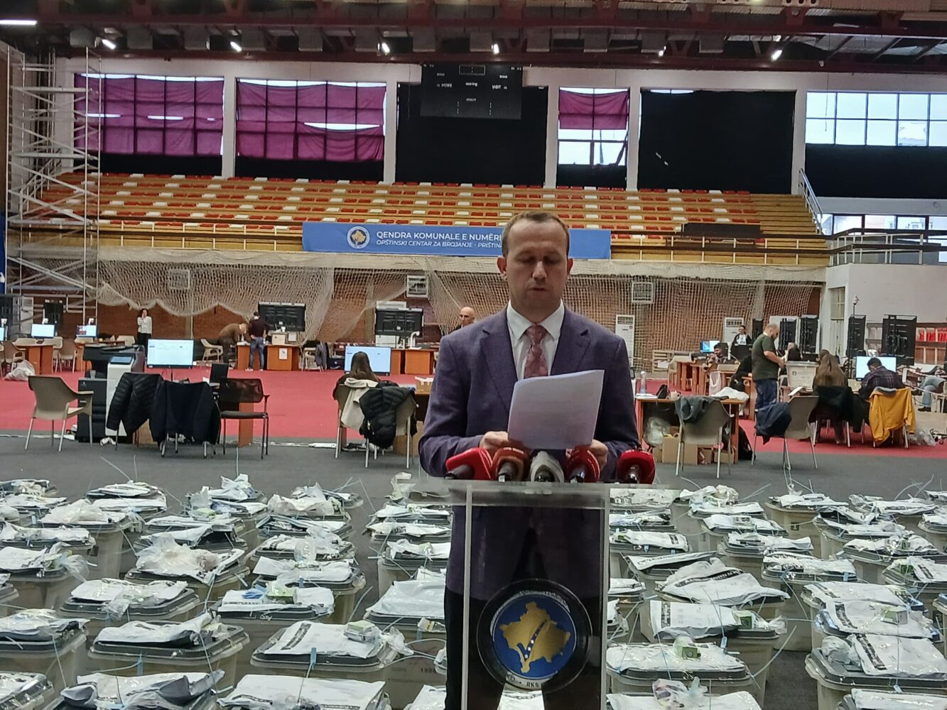 Në Qendrën Komunale të Numërimit në Prishtinë, zëdhënësi i KQZ-së, Valmir Elezi, njoftoi se pas mbylljes së vendvotimeve, materialet zgjedhore janë dërguar në Qendrat Komunale të Numërimit të 18 komunave ku është zhvilluar votimi.