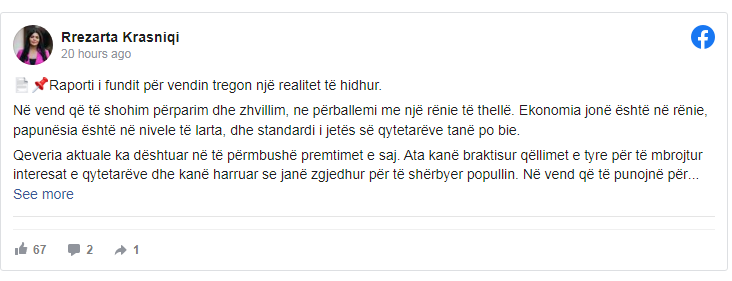 Qeveria aktuale ka dështuar në të përmbushë premtimet e saj. Ata kanë braktisur qëllimet e tyre për të mbrojtur interesat e qytetarëve dhe kanë harruar se janë zgjedhur për të shërbyer popullin. Në vend që të punojnë për të zgjidhur problemet dhe për të ndihmuar në rritjen e vendit tonë, ata janë përqendruar në interesat e tyre personale dhe të ngushta.