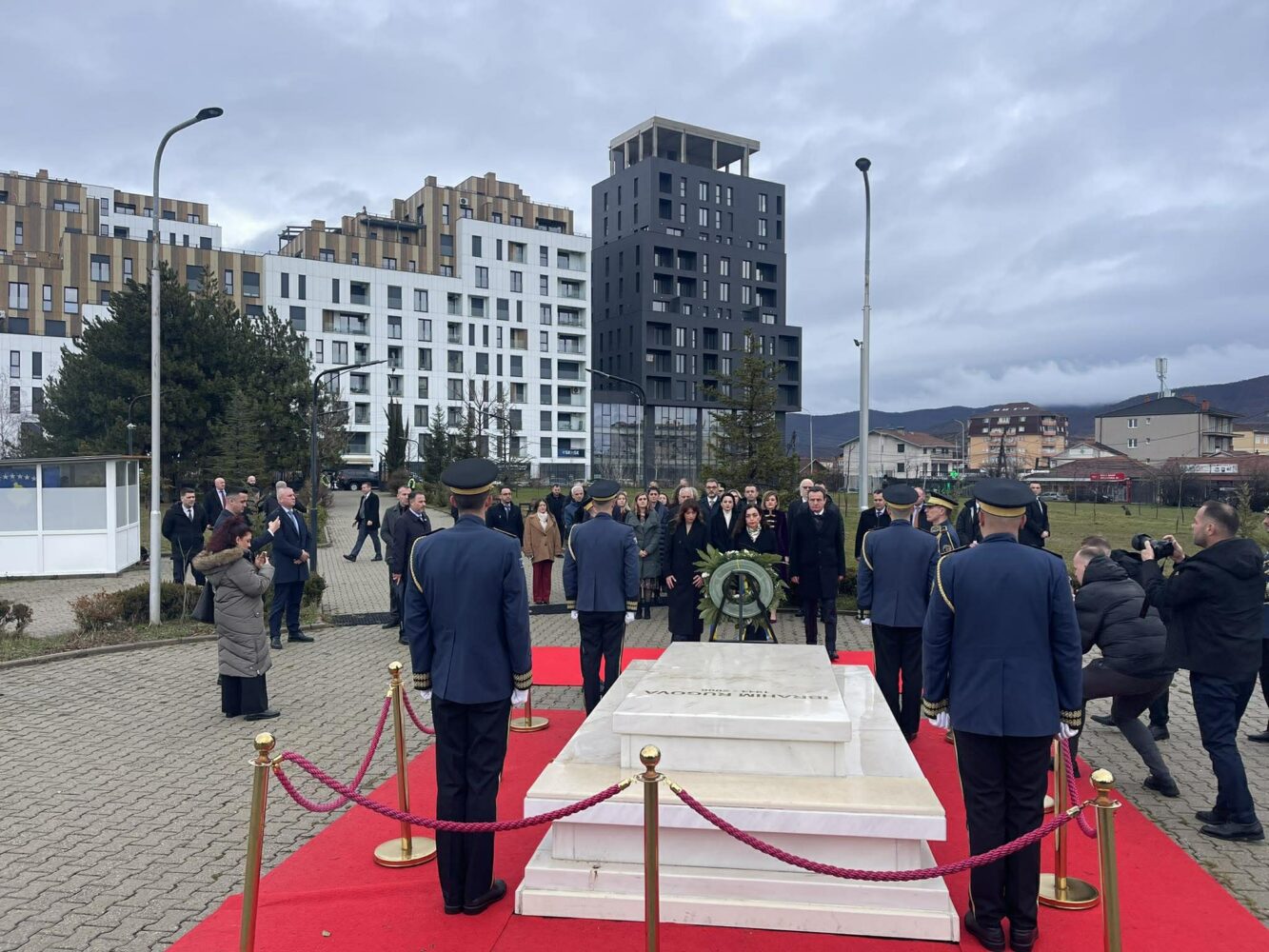 Krerët e shtetit në 18-vjetorin e pavarësisë bëjnë homazhe te varri i ish-presidentit Rugova