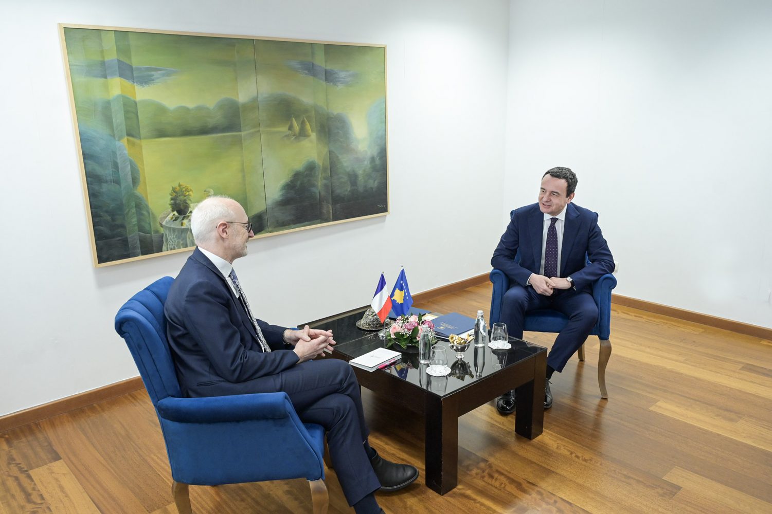 Pas takimit me ambasadorin amerikan, Jeffrey Hovenier dhe Drejtoreshën për Çështje të Evropës Qendrore dhe Jugore në DASh, Collen Hyland, Kryeministri i Republikës së Kosovës, Albin Kurti mirëpriti në zyrën e tij Ambasadorin e Francës në Kosovë, Olivier Guerot.