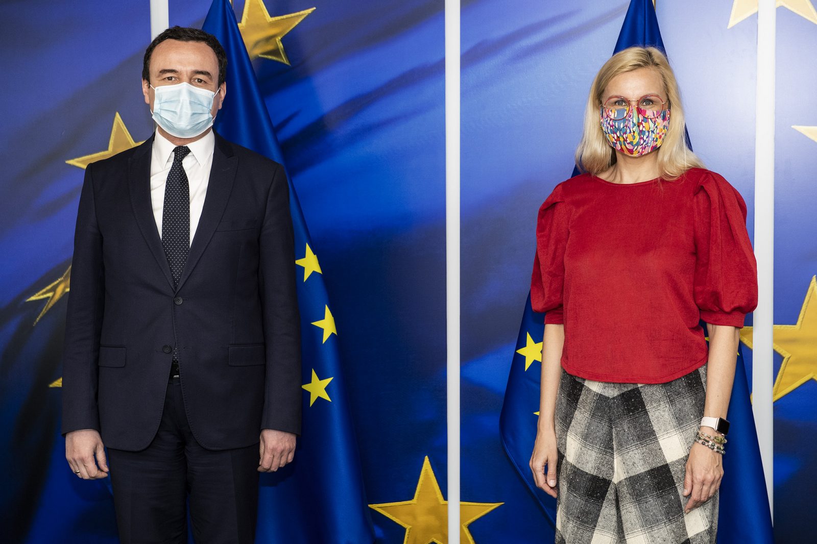 Kryeministri i Republikës së Kosovës, Albin Kurti, së bashku me zëvendëskryeministrin për Integrim Evropian, Zhvillim dhe Dialog, Besnik Bislimi dhe zëvendëskryeministren dhe ministren e Punëve të Jashtme dhe Diasporës, Donika Gërvalla-Schwarz gjatë vizitës zyrtare në Bruksel, është pritur në takim nga Kadri Simson, Komisionere e Bashkimit Evropian për Energji.
