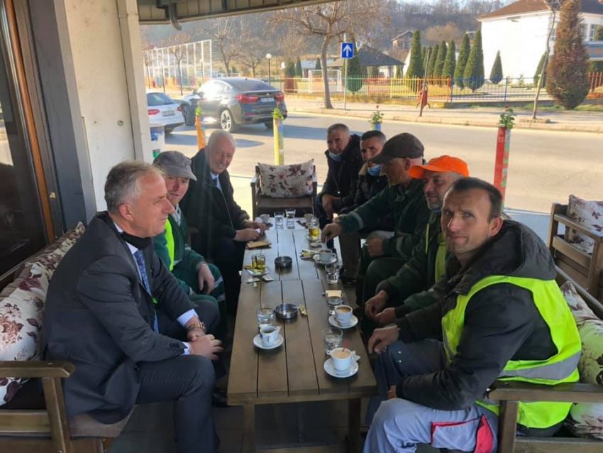 Kryetari Bali Muharremaj e pi kafen e mëngjesit me punëtorët e Ekoregjionit