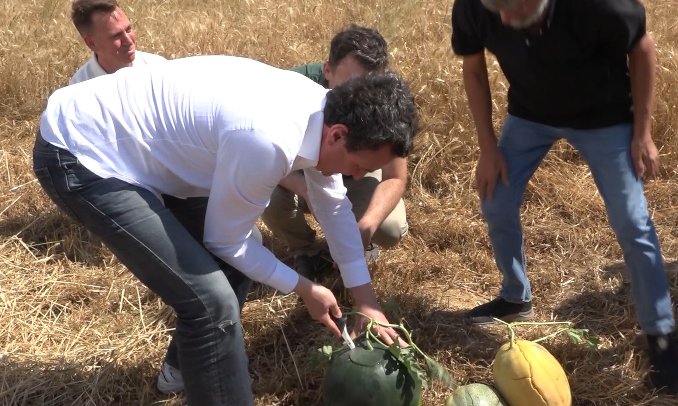 Kryeministri në detyrë, Albin Kurti, dhe ministri në detyrë i Bujqësisë, Pylltarisë dhe Zhvillimit Rural, Faton Peci, shijuan bostanin midis arave të komunës së Suharekës, raporton Ekonomia Online.