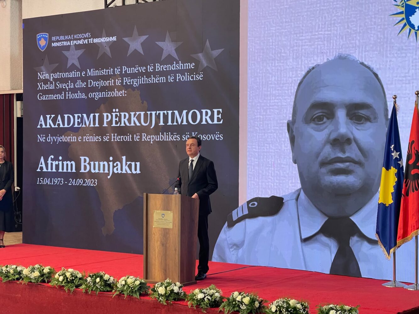 “Siç e kemi parë edhe nga videoxhirimet me dron, në krye të grupit kriminal ishte Milan Radoiçiq, që në atë kohë ishte nënkryetar i partisë Lista Serbe. Pavarësisht kësaj, Lista Serbe asnjëherë nuk e ka dënuar sulmin terrorist në Banjskë. Në këtë pikë më lejoni të them sa më qartë as Lista Serbe dhe asnjë parti apo organizatë e fshehtë apo legale, nuk do të mund, sepse nuk do të lejohet, ta heqë asnjë grimë nga territori, sovraniteti apo nga pavarësia e Republikës së Kosovës. Kjo sepse Kosova është dhe do të vazhdojë që të mbetet histori e suksesshme e shtet-ndërtimit, për të cilin paraprakisht janë mbajtur mijëra e mijëra vite burgosje politike, janë vrarë mbi 2 mijë dëshmorë gjatë luftës së drejtë të UÇK-së, janë vrarë e masakruar mijëra viktima civile në luftë pikërisht me Serbinë”, tha ai.