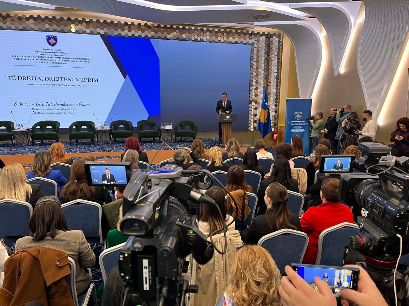 Kurti shtoi se drejtësia e barabartë nënkupton tolerancë zero për dhunën me bazë gjinore, zbatim të urdhrave mbrojtës, mbështetje për të mbijetuarat dhe përgjegjësi për autorët e dhunës, si dhe barazi në paga dhe qasje në shërbime shëndetësore.