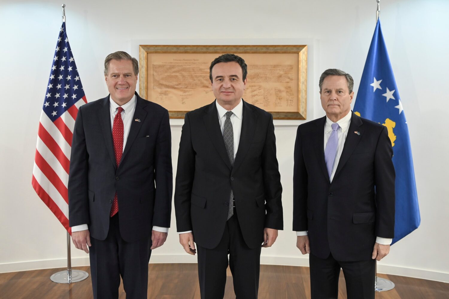 “Mirëprita sot kongresistin republikan Mike Turner dhe kongresistin demokrat Donald Norcross. Të dy janë anëtarë të Komitetit të Shërbimeve të Armatosura të Dhomës së Përfaqësuesve (House Armed Services Committee) dhe të Asamblesë Parlamentare të NATO-s. Diskutuam për raportet ndërmjet vendeve tona mike dhe bashkëpunimin tonë bilateral, veçanërisht në fushën e mbrojtjes dhe sigurisë. Kosova e ka katërfishuar buxhetin e mbrojtjes gjatë këtij mandati qeverisës, duke rritur kështu kapacitetet tona mbrojtëse dhe duke i avancuar ato me sisteme të reja; ndër to edhe prodhime dhe sisteme amerikane. Ndërkohë që në katër vitet e fundit mbi 1000 pjesëtarë të Forcës së Sigurisë së Kosovës (FSK) kanë marrë pjesë në trajnime në programe ushtarake të ShBA-së, përfshirë edukimin ushtarak në Ëest Point dhe U.S. Army Ëar College. Jemi gjithmonë mirënjohës për kontributin historik, rolin aktiv dhe mbështetjen e vazhdueshme të Shteteve të Bashkuara të Amerikës ndaj shtetit të Kosovës”, ka njoftuar Kurti.