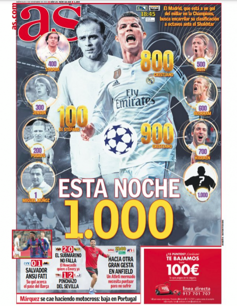 Golin e parë e ka shënuar Miguel Munoz, golin e 100 Di Stefano, golin e 200 Puskas, golin e 300 Jensen, golin e 400 Losada, golin e 500 Guti, golin e 600 Beckham, golin e 700 Higuain, golin e 800 dhe 900 Cristiano Ronaldo, ndërsa sonte, një tjetër lojtar do të shkruajë historinë, duke shënuar golin e njëmijtë.