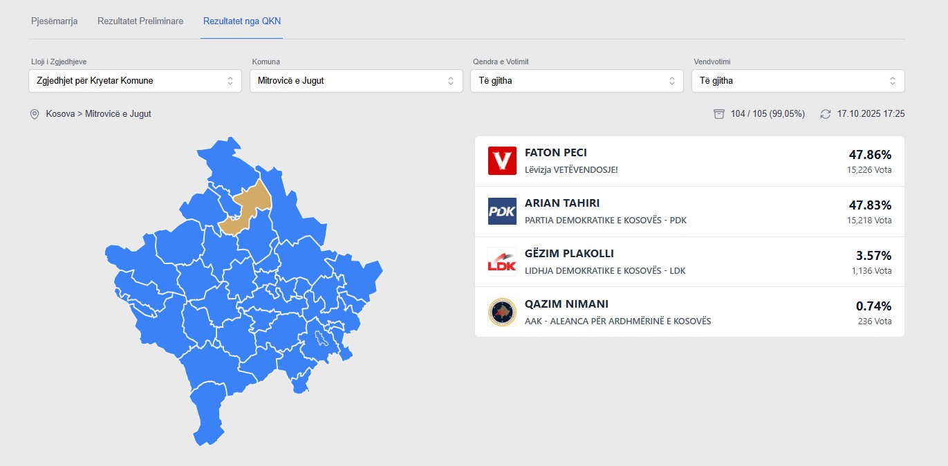 Faton Peci ka marrë epërsinë ndaj Arian Tahirit në garën e ngushtë për Mitrovicën.