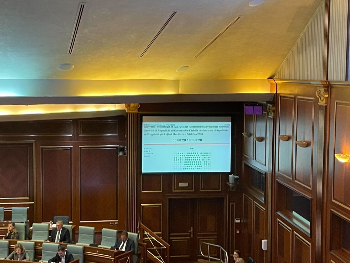 Me 93 vota për, asnjë kundër dhe asnjë abstenim Kuvendi i Kosovës ka miratuar ratifikimin e Marrëveshjes ndërmjet Qeverisë së Republikës së Kosovës dhe Këshillit të Ministrave të Republikës së Shqipërisë për Lojërat Mesdhetare Prishtina 2030, raporton Ekonomia Online.