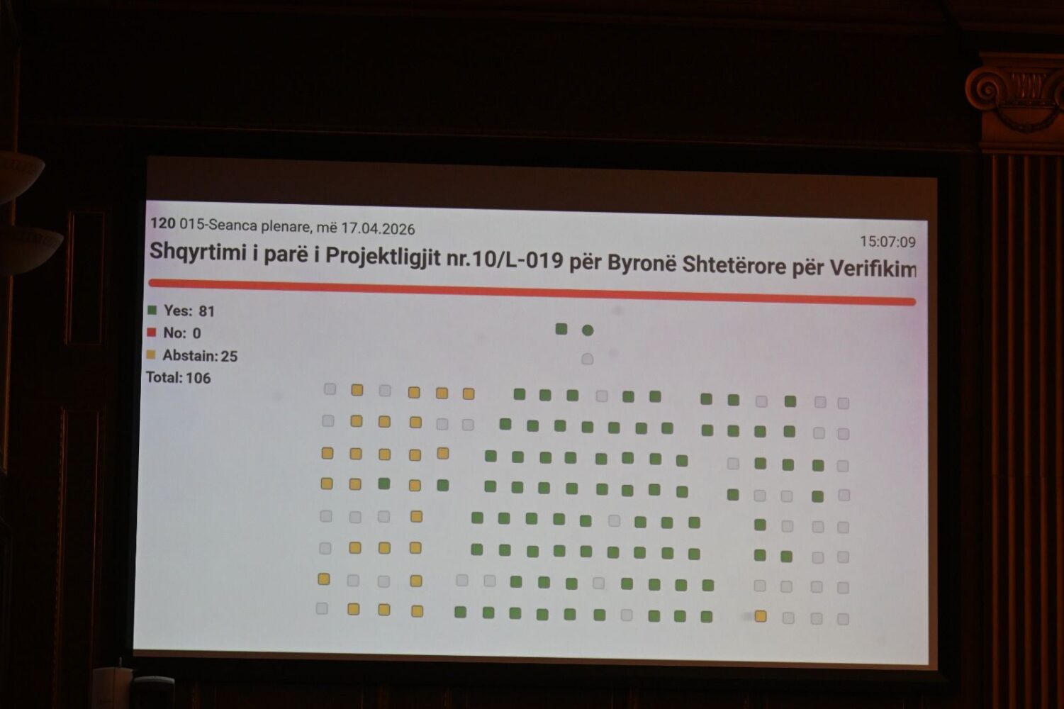 • 15:13 - Kuvendi miraton në parim projektligjin për Byronë shtetërore për konfiskim të pasurisë