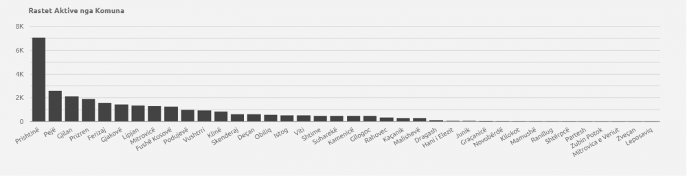 Pas Prishtinës, për nga numri më i madh i rasteve të reja prinë Komuna e Pejës me 2 mijë e 626 raste, pastaj ajo e Gjilanit me 2 mijë e 140, Prizrenit 1 mijë e 925 dhe Ferizajt 1 mijë e 615.