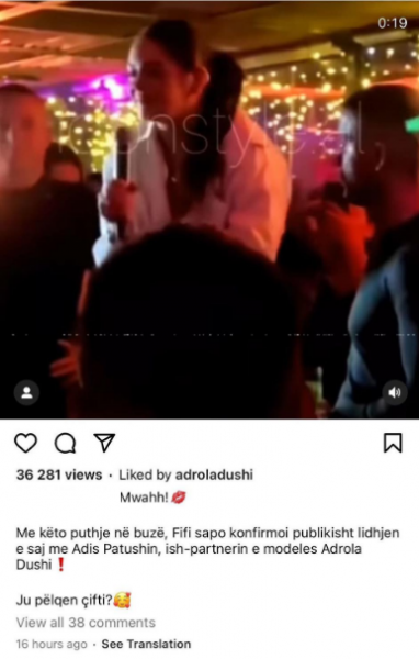 Çifti u kap duke u puthur në një koncert të këngëtares, teksa video u bë virale nëpër rrjete sociale, nuk mungoi as reagimi i modeles, Adrola Dushit, e cila në një video të shpërndarë nga ndjekësit e kishte pëlqyer atë./Express