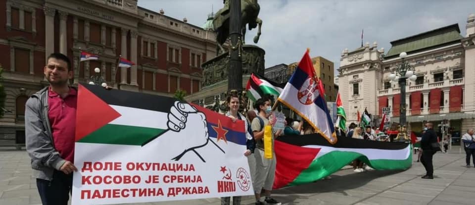 Para dy ditësh në Beograd, palestinezët kanë protestuar kundër Izraelit, teksa në një prej pankartave të tyre ka qenë e shkruar: “Poshtë okupimi, Kosova është Serbi, dhe Palestina është shtet”
