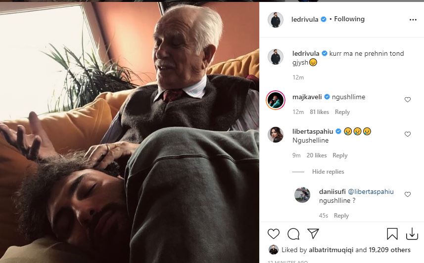 Ledri ka publikuar një fotografi me gjyshin teksa shihet se i ka vendosur kokën në prehër.