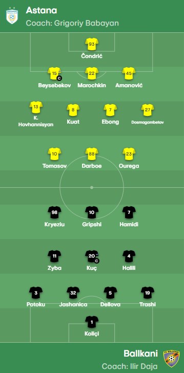 Ilir Daja ka zgjedhur titullarët që do të luftojnë në këtë sfidë. Më poshtë do të njiheni me formacionet zyrtare të ndeshjes Astana – Ballkani.