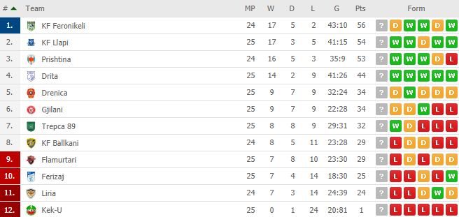 Tabela e IPKO Superligës pas ndeshjeve të zhvilluara sot:
