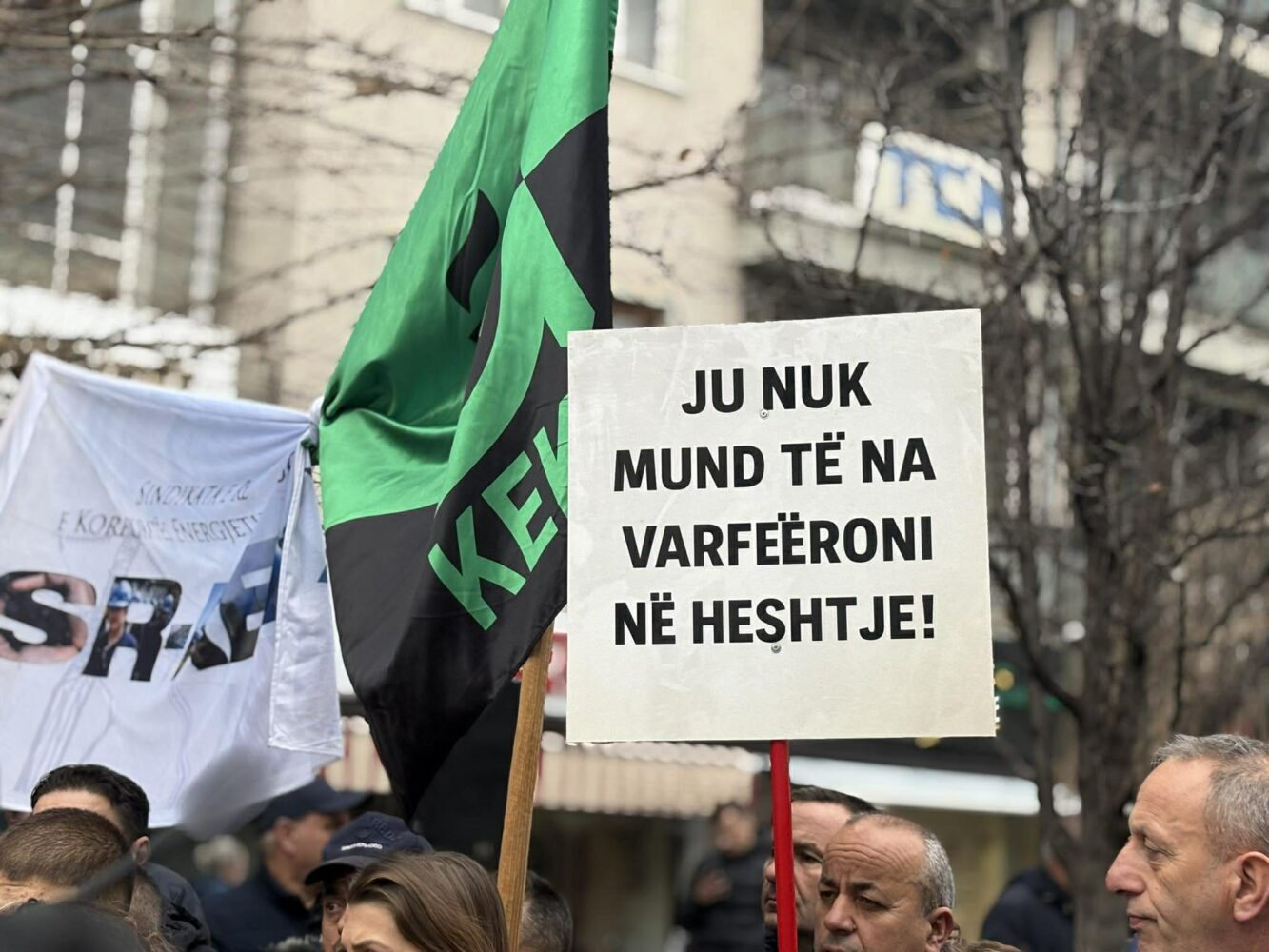 “Punëtorët e rrezikuar në punë, por rrezikshmëria nuk paguhet”, “Duam ngritjen e pagave, dhe ne duam jetën”, “menaxhimet respekto ligjin e punës, paguaj vikendet për punëtorët me ndërrime”, janë këto vetëm disa nga thirrjet e punëtorëve të Korporatës Energjetike të Kosovës (KEK) të cilët po protestojnë në mënyrë paqësore para zyrave të Korporatës Energjetike të Kosovës (KEK) në Prishtinë, raporton Ekonomia Online.