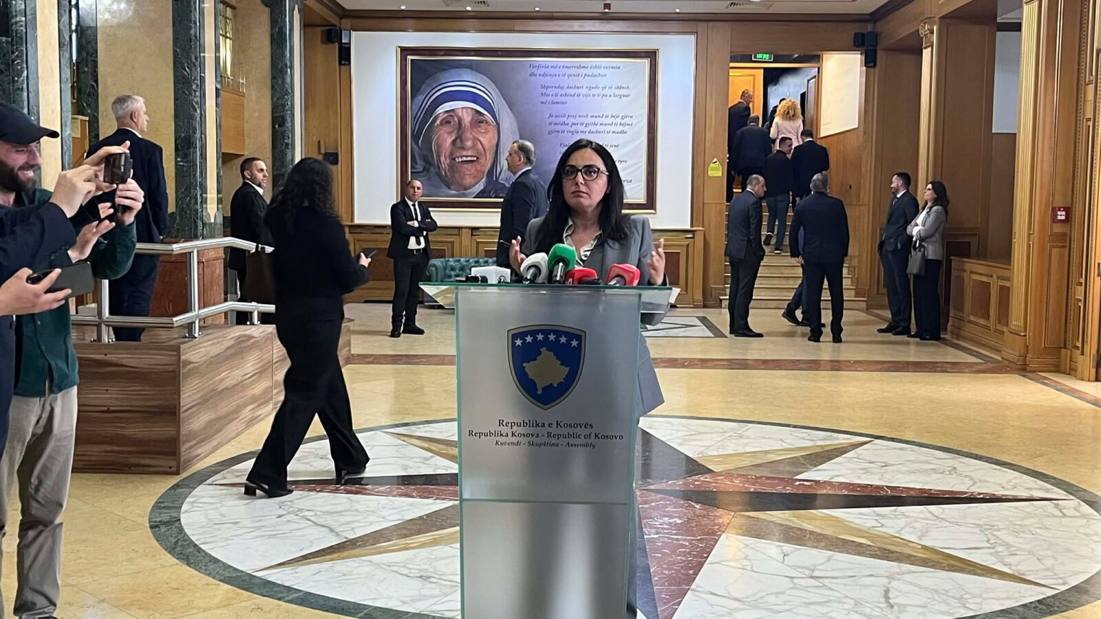 “Në vend që të kishim një marrëveshje politike që do të sillte një emër për president, ne kemi tashmë një thirrje të një seance që është një tentativë për një farsë ose improvizim të një seance me gjasa se po diskutojmë për president. Vërtet është fatkeqësi sepse në vend që të kishim një emër konsensual ose me marrëveshje politike dhe të kishim një votim, të kishim një president, ne sot kemi vetëm improvizime të seancave dhe kjo është për të ardhur keq po kështu është dhe një tentativë për t’u tallur me qytetarët. Në dukje të jashtme për t’u dukur se po diskutojmë për presidentin, ndërkohë për të mos realizuar të drejtën për të pasur një president. Kjo veçse e thellon krizën dhe nuk sjell asnjë zgjidhje edhe përdoret më shumë për propagandë nga shumica, e përgjegjësia e së cilës është më e madhja e tyre”, tha ajo.