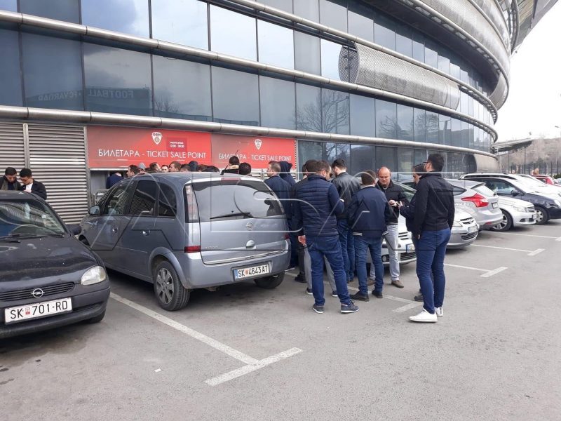 Madje, te stadiumi kombëtar “Todor Proeski” shihen radhë të gjata të personave që përpiqen të sigurojnë bileta. Ato shiten me çmime 5 dhe 6 euro, kurse blerësit duhet ta kenë me vete një dokument identifikimi.