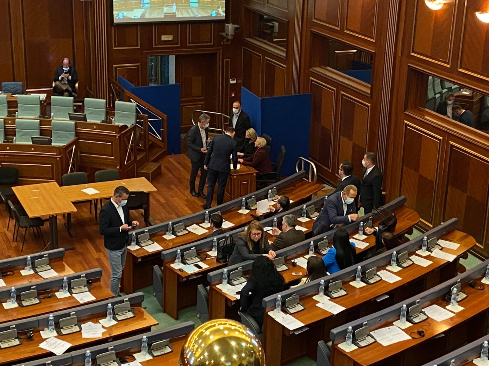 Deputetët e Lëvizjes Vetëvendosje dhe ata të Lidhjes Demokratike të Kosovës ndodhen në sallë ndërsa pas pak nis procesi i hedhjes së votave në kuti.