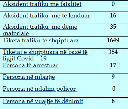 Ndërkaq, numri i tiketave të trafikut është 1649, ku gjatë 24 orëve janë shënuar edhe 16 aksidente me të lënduar dhe 35 me dëme materiale.