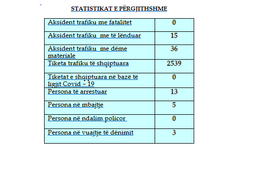 Në raport thuhet edhe se gjatë kësaj kohe janë arrestuar 13 persona, nga të cilët 5 janë dërguar në mbajtje.